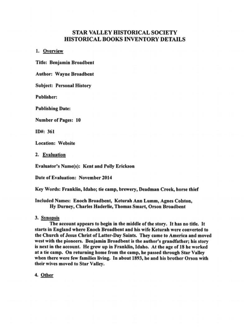 Benjamin Broadbent Download Document Item#: 51480 Categories Histories And Stories , PDF Author Wayne Broadbent Subject Personal History Item Location Building: SVHS Barn Search All Artifacts Search