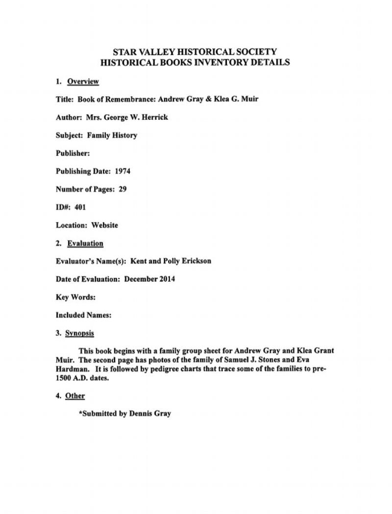 Book of Remembrance: Andrew Gray and Klea G. Muir Download Document Item#: 51516 Categories Histories And Stories , PDF Author Mrs. George W. Herrick Subject Family History Item Location Building: SVHS Barn Search All Artifacts Search