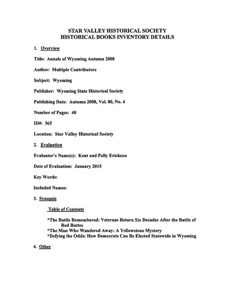 Annals of Wyoming Autumn 2008 Download Document Item#: 51678 Categories Histories And Stories , PDF Author Multiple Subject Wyoming Item Location Building: SVHS Barn Search All Artifacts Search