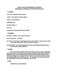Annals of Wyoming Spring 2014 Download Document Item#: 51689 Categories Histories And Stories , PDF Author Multiple Subject Wyoming Item Location Building: SVHS Barn Search All Artifacts Search Recenty Viewed Alice Augusta Erickson Jenkins